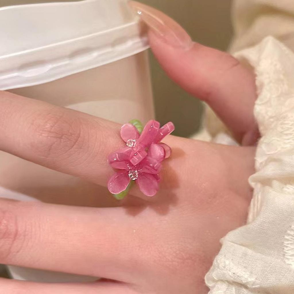 Изготовленное из эластичных бусин и акрила, это акриловое кольцо с цветком фиалки обеспечивает гибкую посадку для разных размеров пальцев, сочетая комфорт с цветочной элегантностью.
