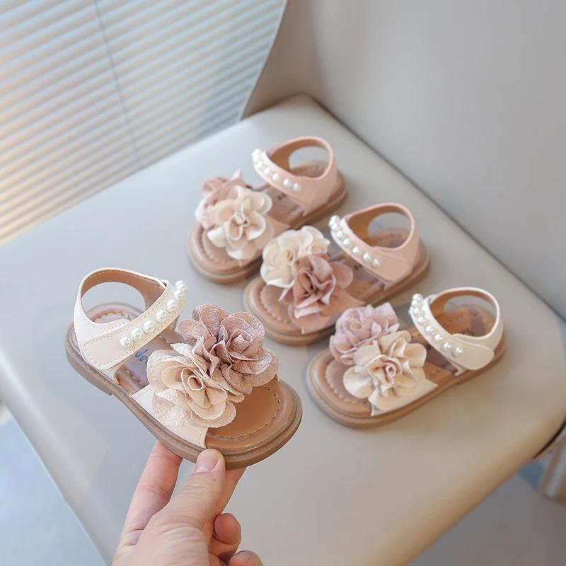 Пляжные сандалии для маленьких девочек 2025 лето новые детские принцесса милые цветочные сандалии с большими цветами жемчугом бисером с открытым носком противоскользящие — купить товар онлайн с бесплатной доставкой по всему миру!