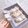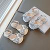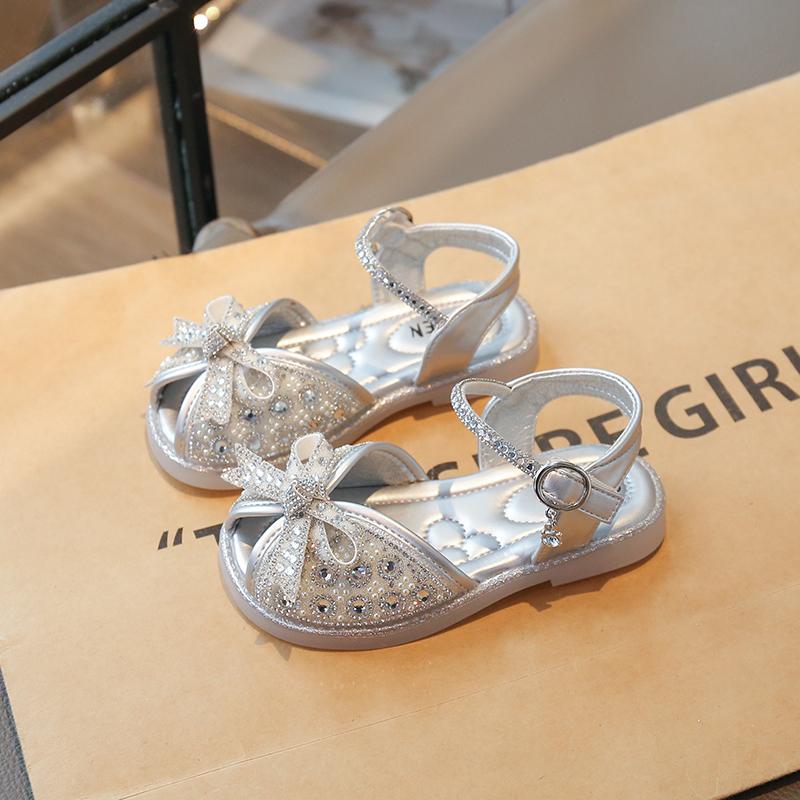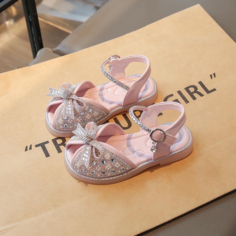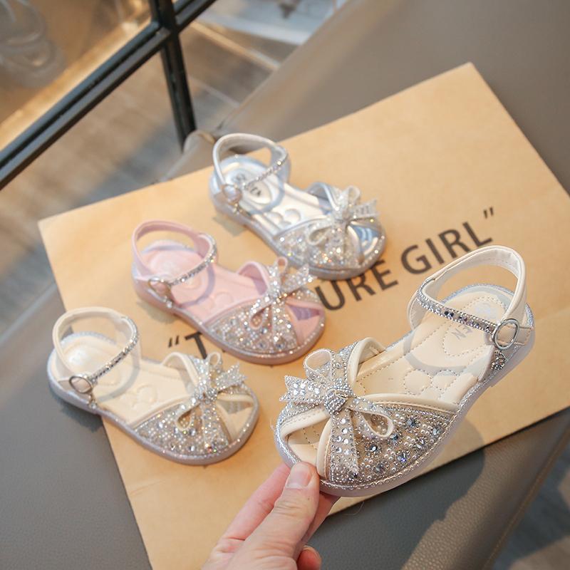 Босоножки для девочек с открытым носком, блестящие, с кристаллами, детские туфли принцессы, с милыми бантиками, лето 2025, новая коллекция, детская пляжная обувь, нескользящая мягкая подошва