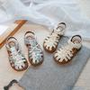 Girls Sandals Soild Color Versatile Kids Princess Shoes Beading Bows 2025 Summer New Children Beach Shoes Hook&loop Soft Sole