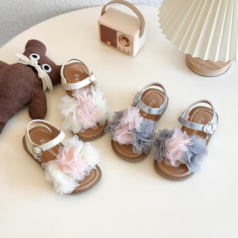 Босоножки для девочек Нескользящая мягкая подошва Детские туфли принцессы Кружево Цветы Смешанный цвет 2025 Лето Новые Детские пляжные туфли Модные Милые