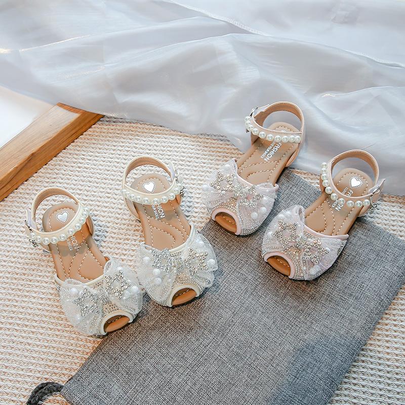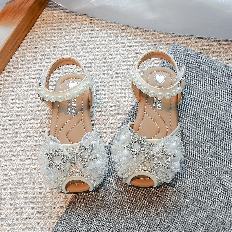 Босоножки для девочек, милые кружевные банты, детские туфли принцессы для танцев, босоножки с открытым носком, лето 2025, новая детская обувь для платья для свадебной вечеринки