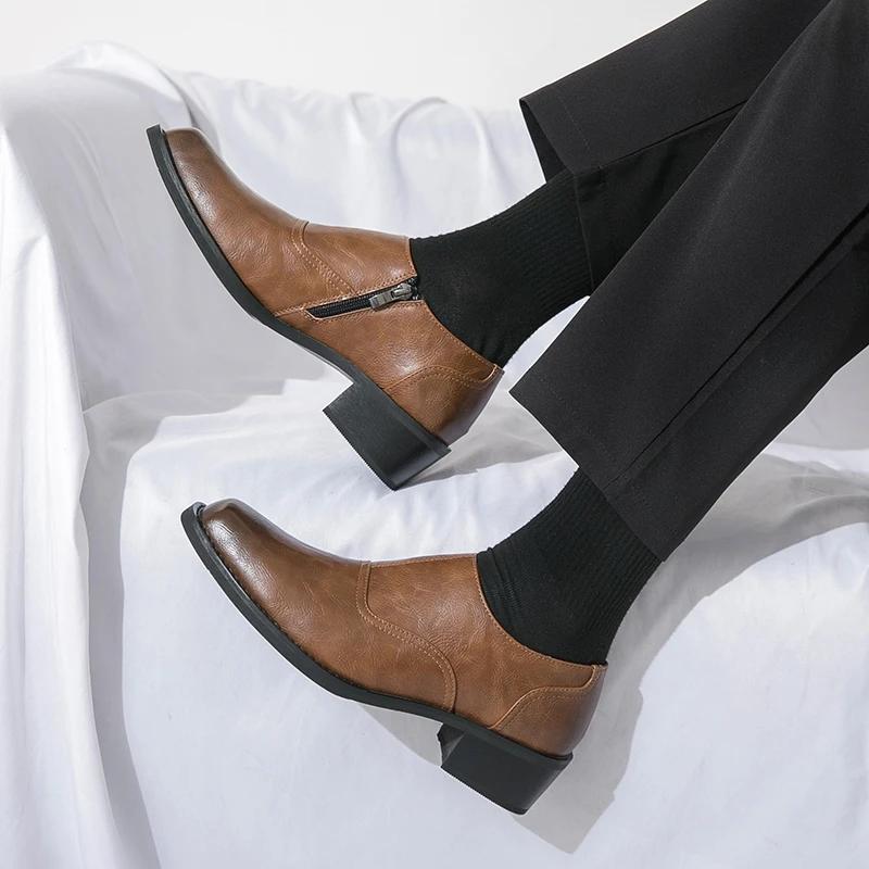 Мужские туфли на платформе на высоком каблуке из кожи на молнии, удобные, увеличивающие рост, для формального платья, офиса, танцев, мужские свадебные туфли для жениха