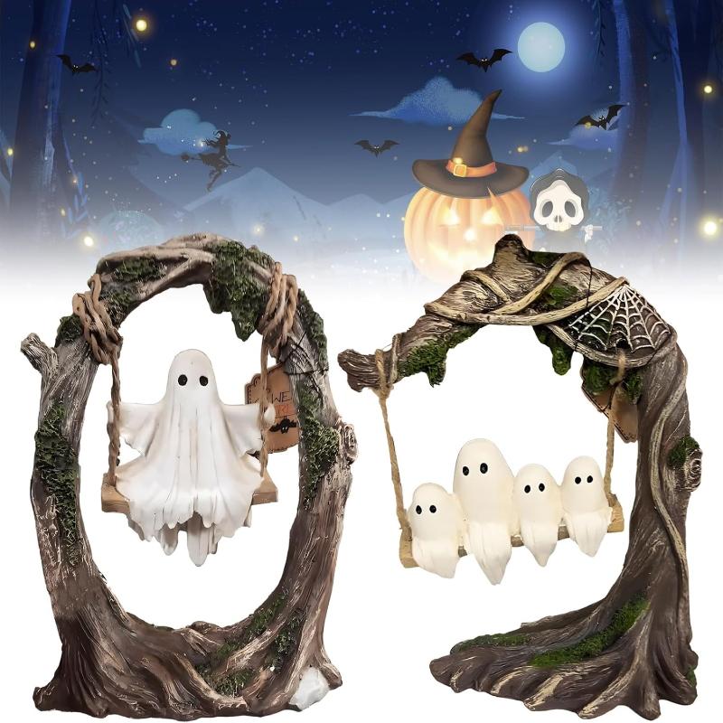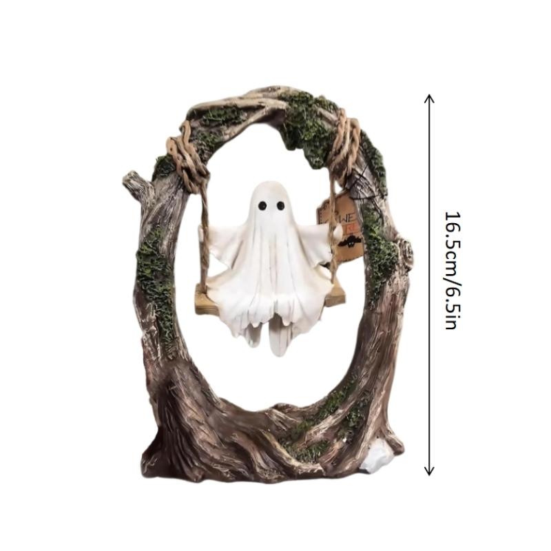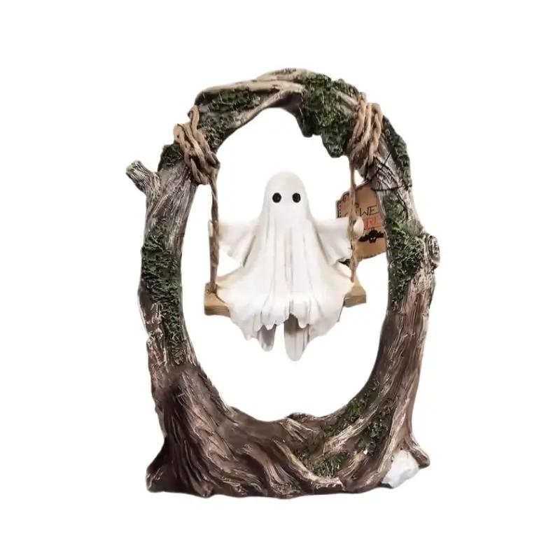 Статуя Качающегося Призрака на Хэллоуин Смола Жуткая Фигурка Призрак Дерево Качели Украшение Настольная Книжная Полка Сад Патио Газон Декор на Хэллоуин