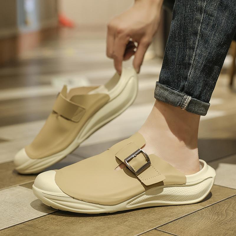 Кожаные лоферы без задника, тапочки, полуботинки для мужчин, мюли, мужская повседневная обувь, уличные мужские шлепанцы, мужские слипоны, нескользящая обувь для ленивых