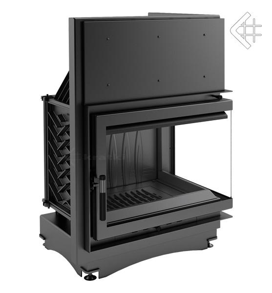 Каминная топка с двумя стеклами, соединенными друг с другом под углом (без скобок).