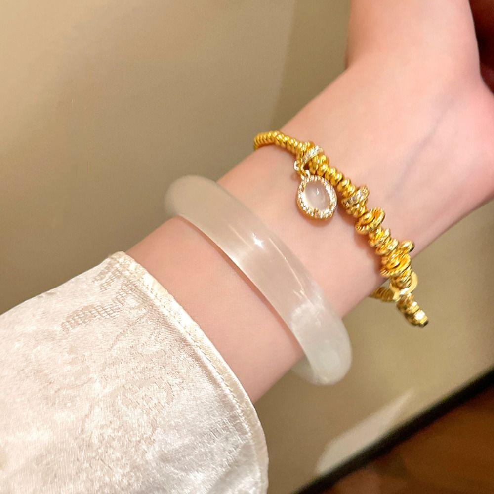 Round Circular Bracelet White Moonlight Opal Bracelet Creative Retro Hand Ring Spring Summer