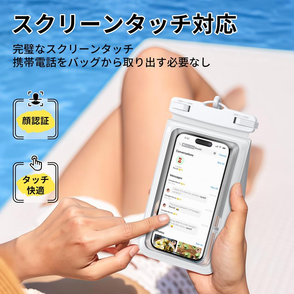 [Полностью водонепроницаемый чехол для глубин до 30 м] Сертифицирован по IPX8 для полной водонепроницаемой защиты до 30 м! Защитите свой смартфон во время плавания или дайвинга. Специальная высокочувствительная пленка позволяет совершать подводные звонки, воспроизводить музыку и записывать видео в формате 4K, так что вы сможете наслаждаться своими подводными приключениями стильно.