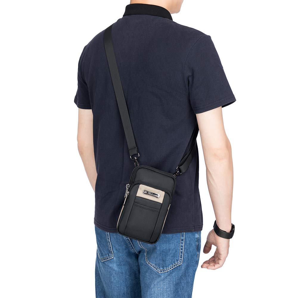 Сумка имеет молнию, чтобы предотвратить выпадение вещей.. 5. Примеры хранения: Длинный кошелек, смартфон, блокнот, визитница, паспорт, шариковая ручка. Простой дизайн, один цвет: черный. 1. Простой дизайн, подходящий как мужчинам, так и женщинам всех возрастов. 2. Размер: Приблизительно 19 см в длину, 11,5 см в ширину, 5 см в глубину. 3. Вес: Приблизительно 250 г. 4. цвет: черный. 5. аксессуары: Карабин, плечевой ремень (регулируемая длина). 6. Материал: Оксфорд.