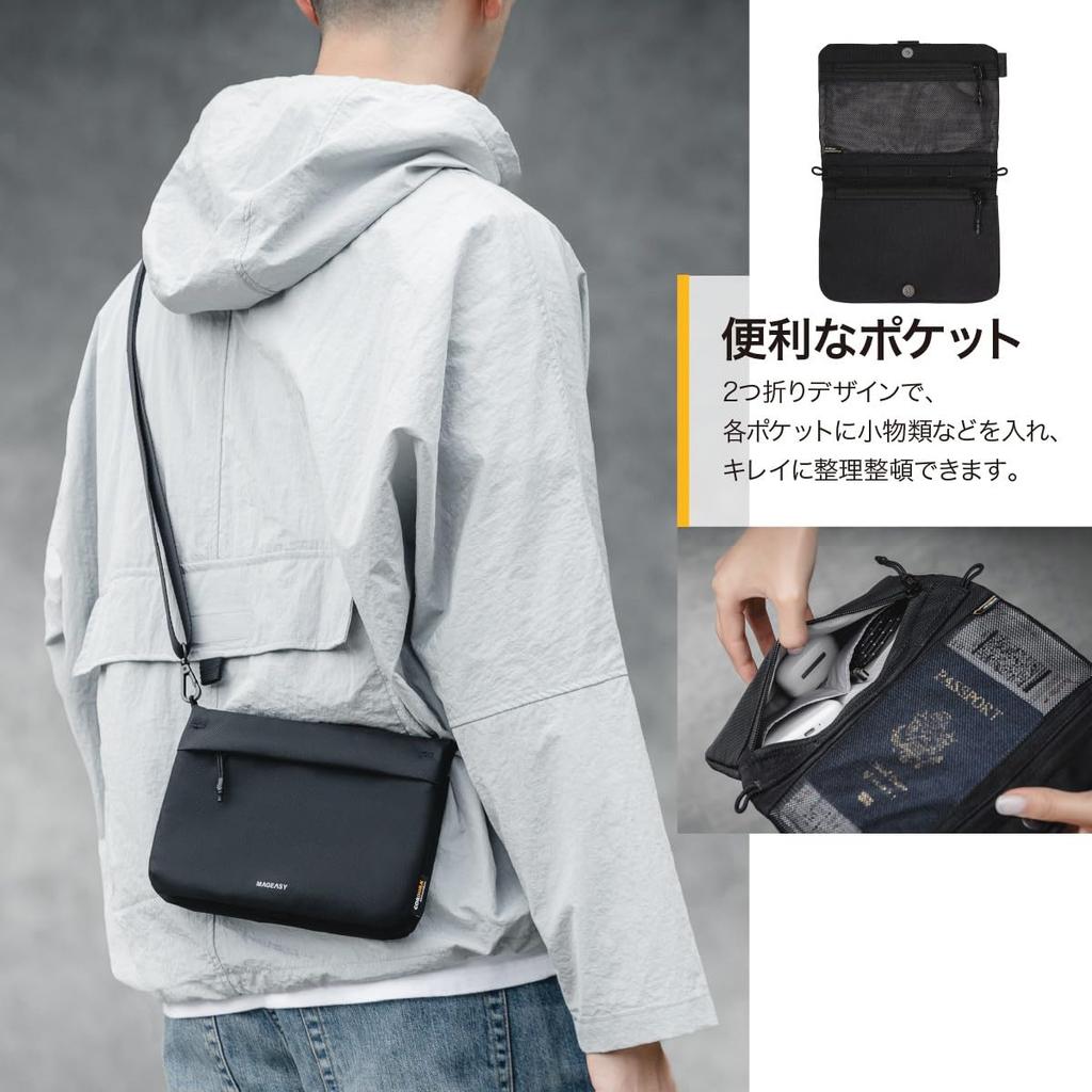 MagEasy Сумка-сакош с ремешком, плечевой ремень с карманом для хранения смартфона и чехлом для мелких предметов для мужчин и 2L SACOCHE графитового черного цвета