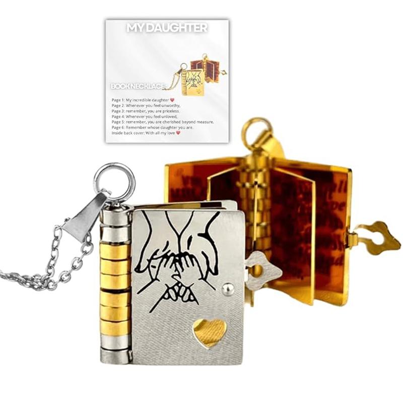 Открывающееся ожерелье-книга для дочери из нержавеющей стали со страницами с гравировкой, ожерелье с мини-подвеской в виде книги золотого цвета