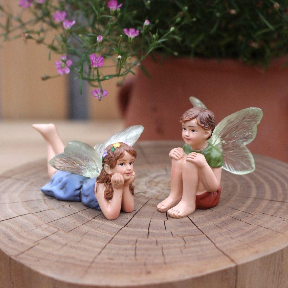2 шт. Мини статуэтка феи цветов из смолы, садовые скульптуры, поделки, миниатюрные фигурки, подарок