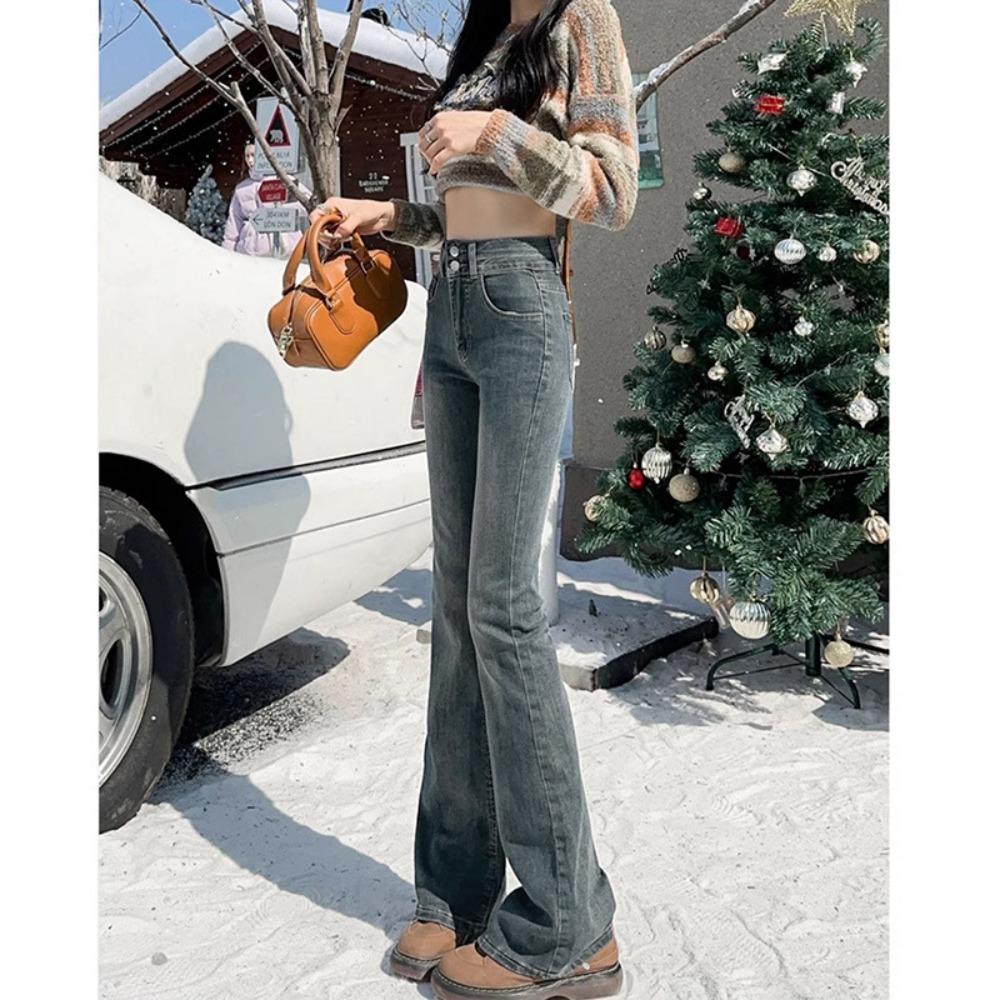 Микро-пулл джинсы женские весна и осень новые с высокой талией корейские облегающие брюки-подковы маленькие расклешенные брюки инс — купить товар онлайн с бесплатной доставкой по всему миру!
