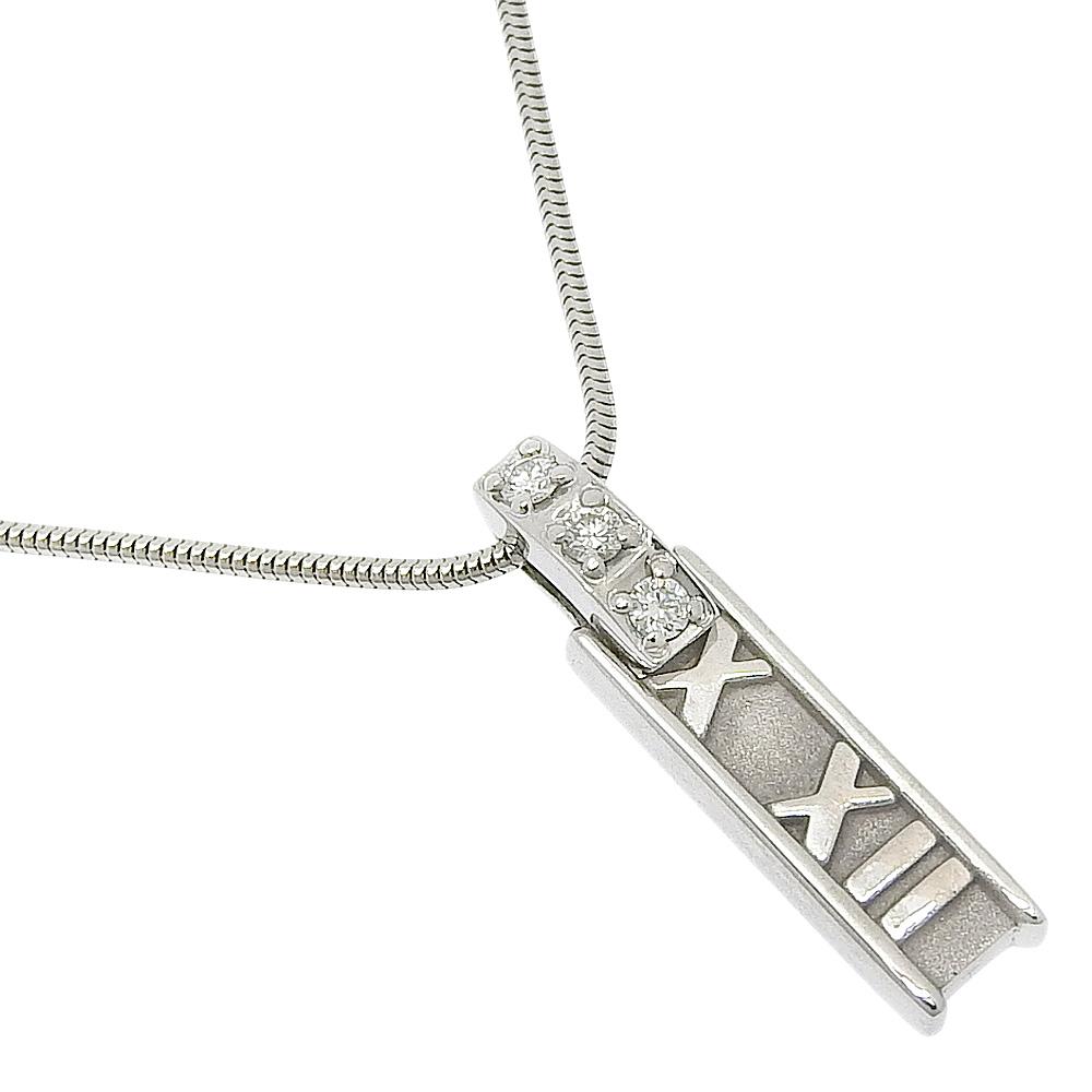TIFFANY&Co. Atlas bar Necklace 3P diamond K18 white gold/diamond 7.1g Women Used