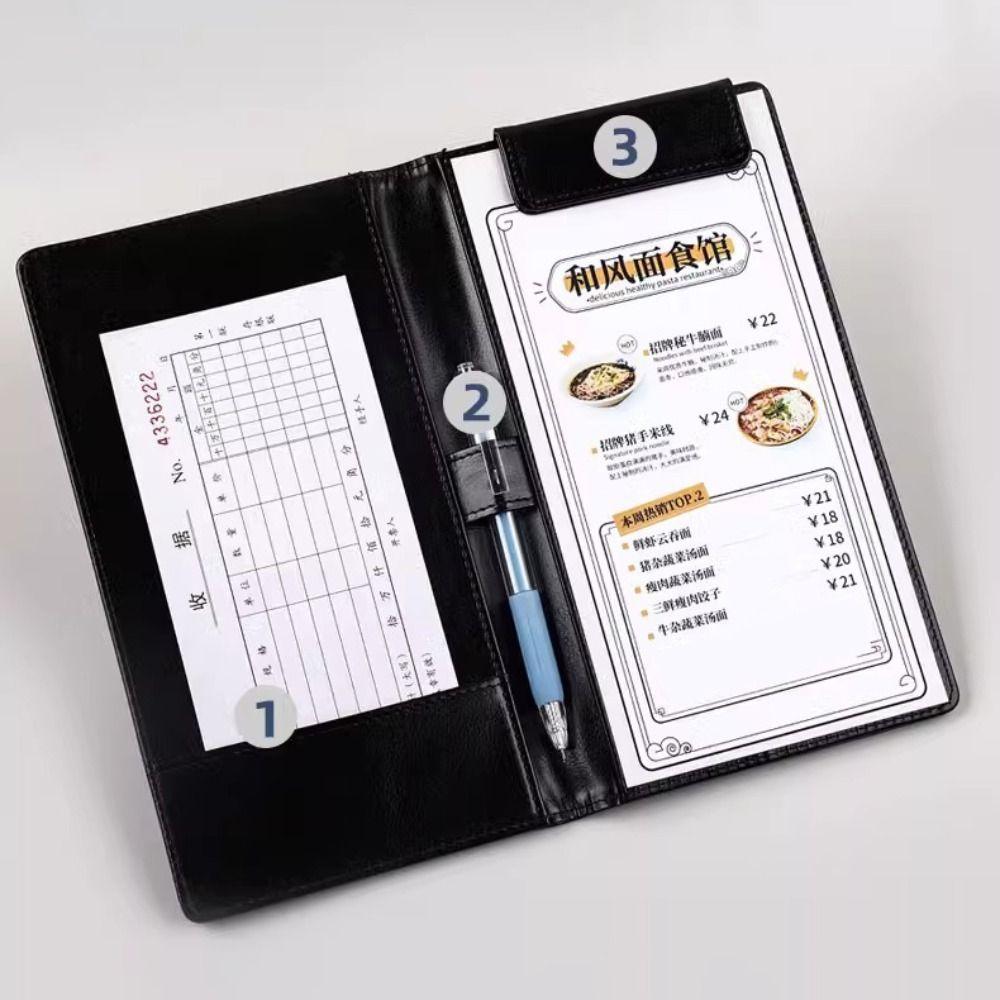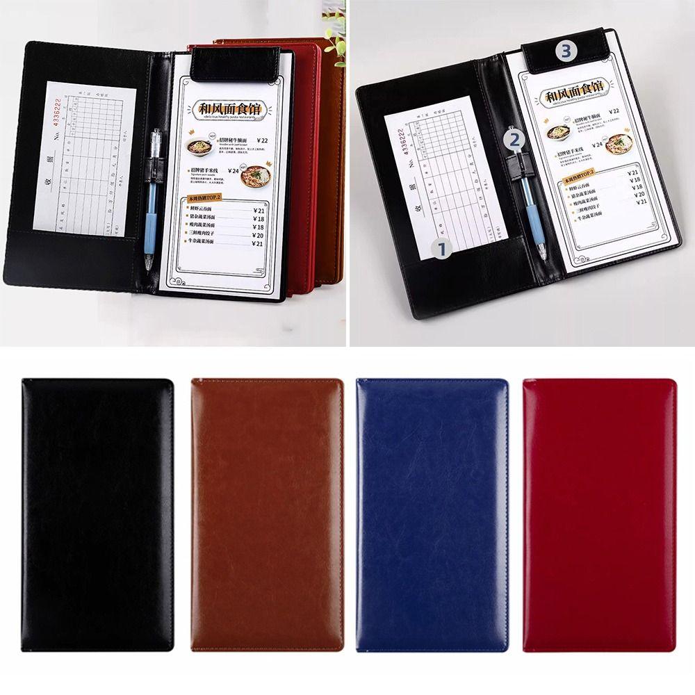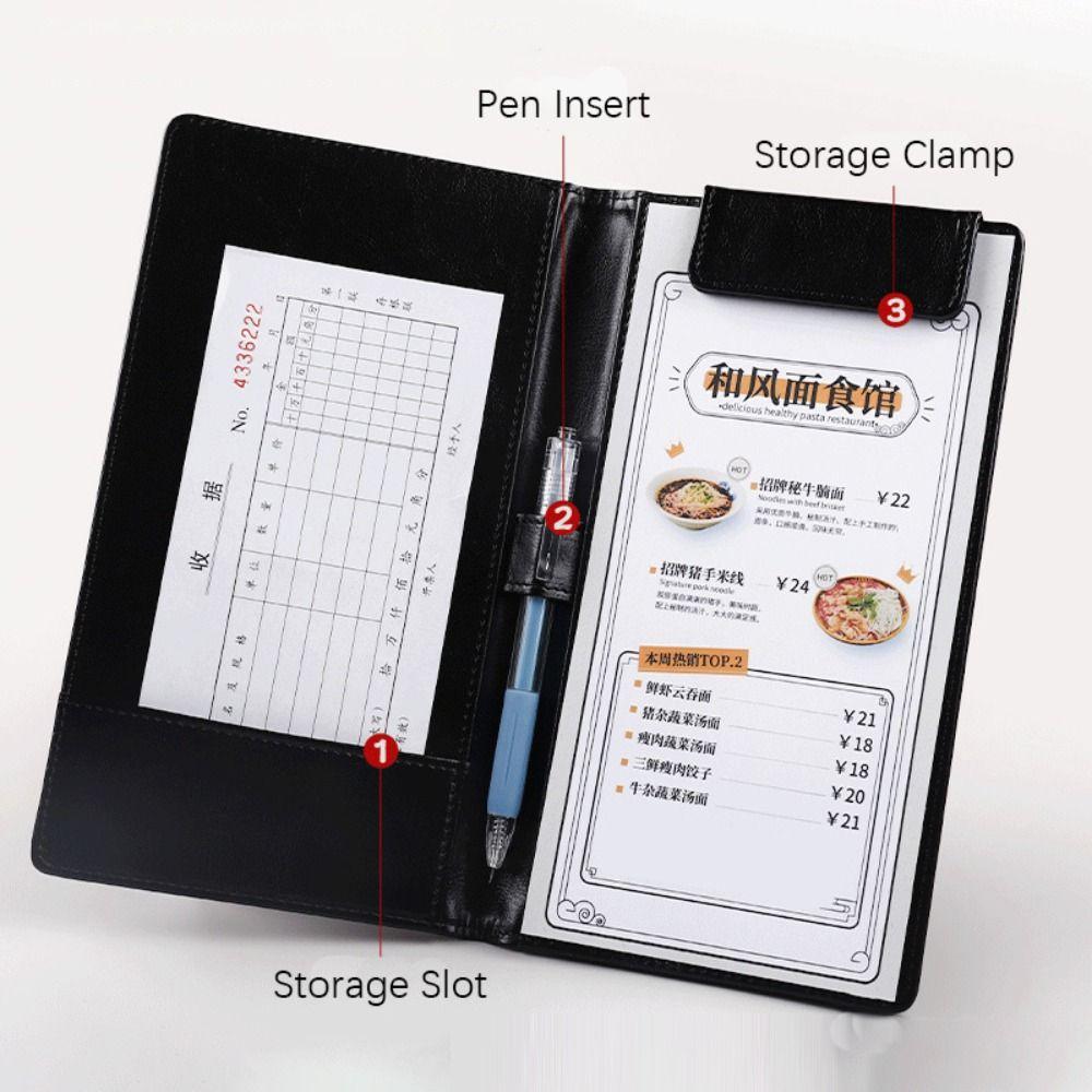 PU Leather A6 File Folder Storage Slot Business Meeting Contract Clamp Restaurant
