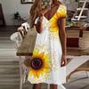 Летняя мода женские V-образный вырез короткий рукав подсолнечник принт платье сексуальные короткие юбки платья