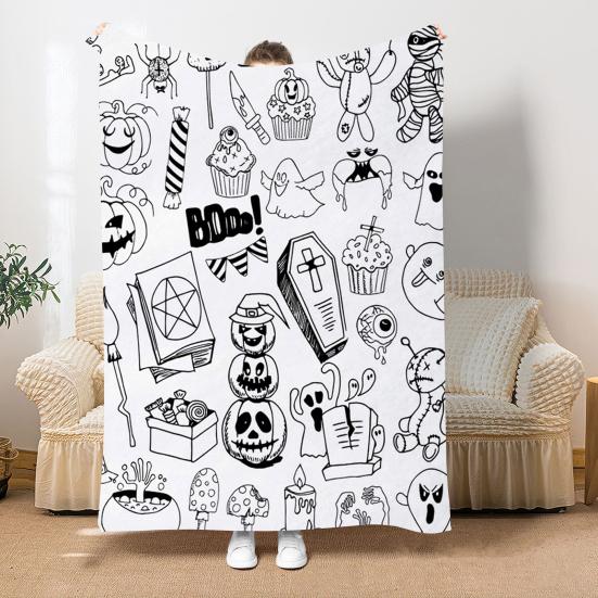 Оставайтесь в тепле и уюте с нашим легким и прочным одеялом, идеально подходящим для использования в помещении или на открытом воздухе.. Изготовленное из высококачественной фланели, это ультрамягкое одеяло обеспечивает исключительное тепло в прохладные осенние ночи.. Милый узор с элементами Хэллоуина добавляет праздничное настроение вашему домашнему декору, обеспечивая при этом ваш комфорт..
