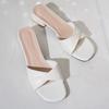 2025Новая Мода Открытый Носок Однотонный Простой Кожаный Верх Универсальный Конфетный Цвет Большие Шлепанцы Квадратный Каблук Обувь Женская