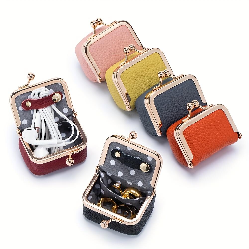 Мини-кошелек для монет из натуральной кожи в винтажном стиле с застежкой-поцелуйчиком - Компактный органайзер для украшений и аксессуаров для женщин, Элегантный синий дизайн с золотистой застежкой