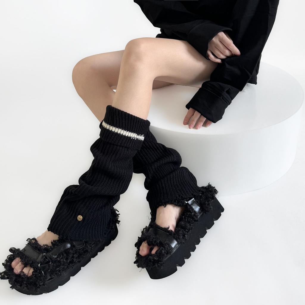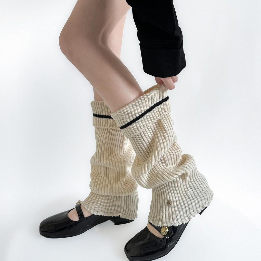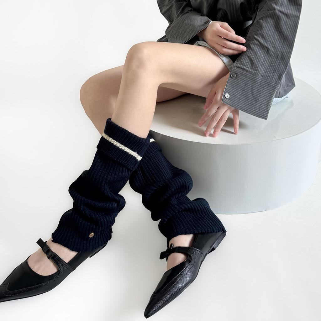 Дизайн с металлической пряжкой, вязаные гетры с отворотами, свободные и мешковатые, для женщин, осенне-зимние, теплые, в полоску, в стиле преппи