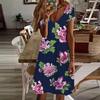 Летняя мода женские V-образный вырез короткий рукав цветочный принт платье сексуальные короткие юбки платья