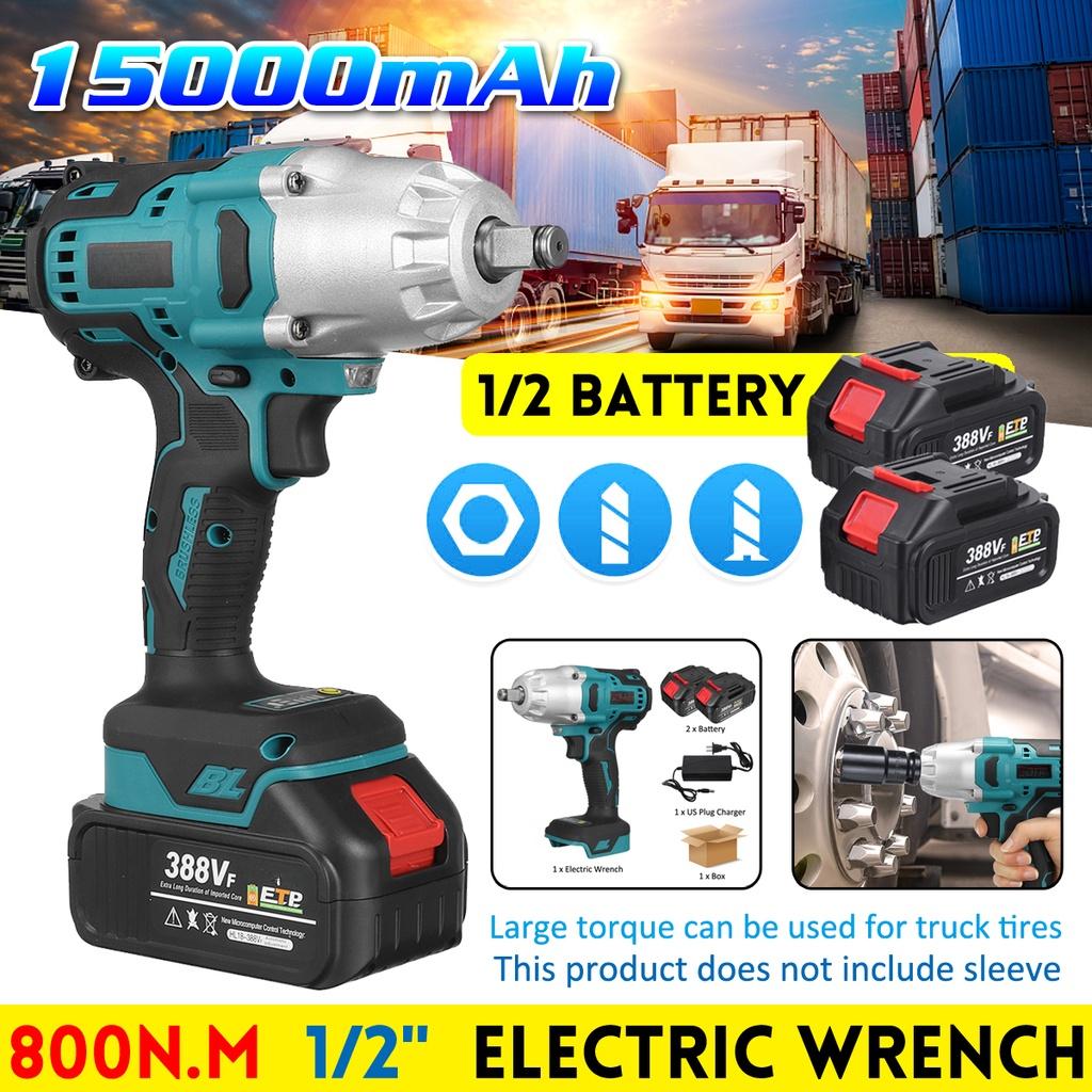 Высокий крутящий момент 800 Н·м Аккумуляторный бесщеточный электрический ударный гайковерт 388VF 1/2 дюйма Электроинструменты с 2 шт. 3,0 А·ч перезаряжаемыми батареями