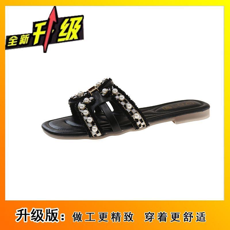Мягкая подошва одно слово фея универсальные жемчужные пляжные шлепанцы на плоской подошве с легким ароматом женская обувь 2025 лето новинка