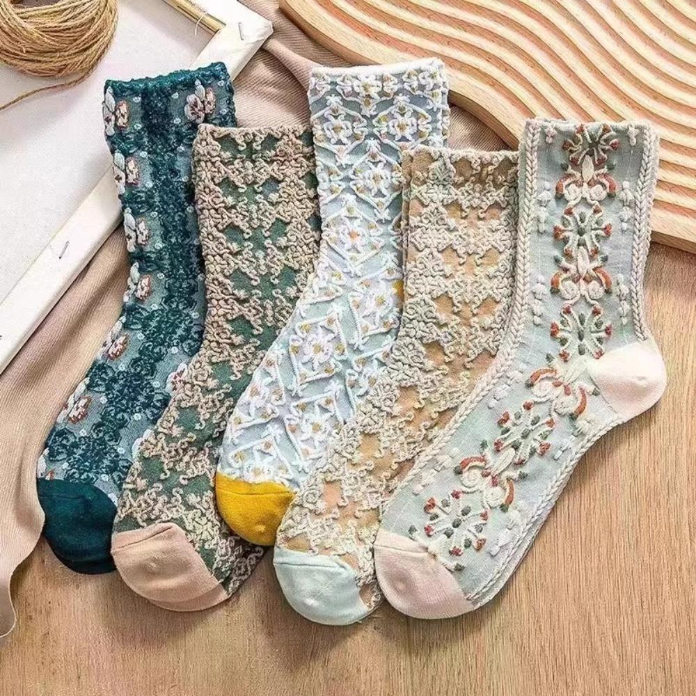 5 пар Женские носки с цветочным дизайном 3D тиснение 3D тисненые носки с цветами Весна Лето