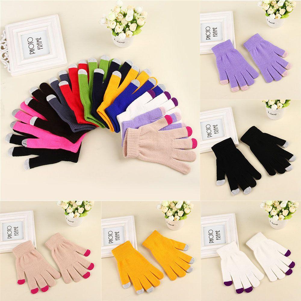 Модные эластичные теплые варежки зимние перчатки сенсорный экран перчатки с полными пальцами