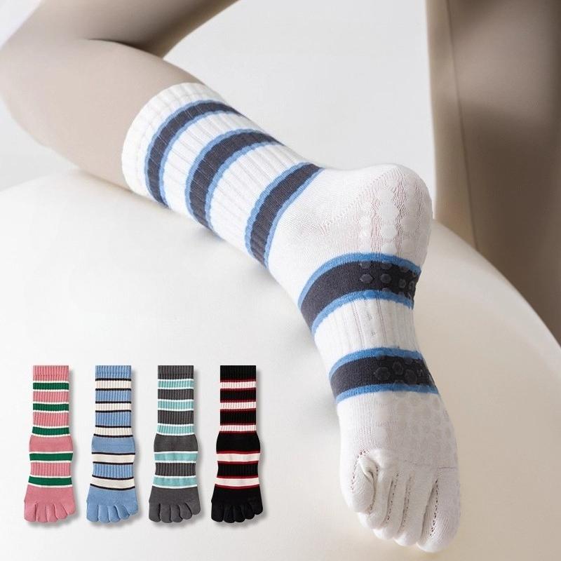 Носки для йоги с пятью пальцами, повседневные полосатые, для занятий в помещении, для пилатеса, силиконовые нескользящие, женские профессиональные фитнес-носки для танцев и спорта — купить товар онлайн с бесплатной доставкой по всему миру!
