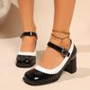 Весенние Новые Туфли на Грубом Каблуке Женские С Квадратным Носком С Мелким Вырезом С Металлической Пряжкой С Пайетками Противоскользящие Износостойкие Высокие Каблуки