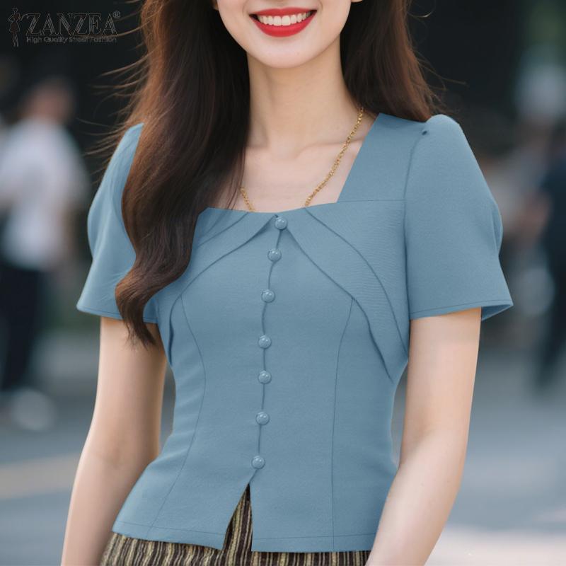 ZANZEA Женская летняя повседневная блузка с квадратным вырезом, короткими рукавами и приталенного силуэта — купить товар онлайн с бесплатной доставкой по всему миру!