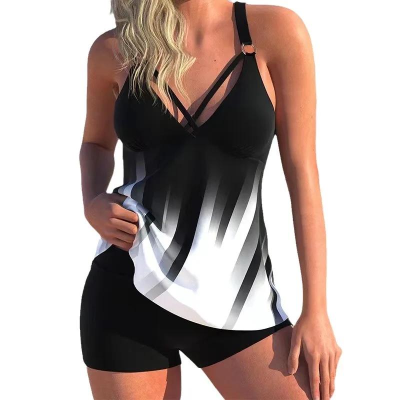 Консервативный женский купальник бикини большого размера с принтом, раздельный купальник, трусы с плоским дном, купальный костюм с открытой спиной, женская модель