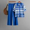 Модный вязаный комплект женский летний полосатый свободный топ с коротким рукавом и повседневные брюки, комплект из двух предметов