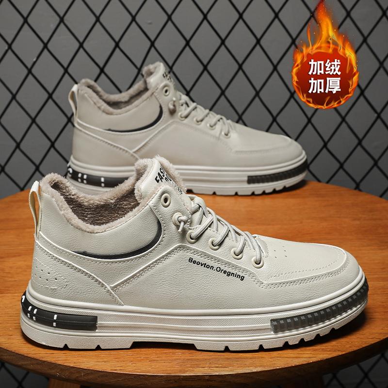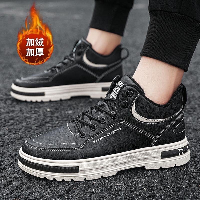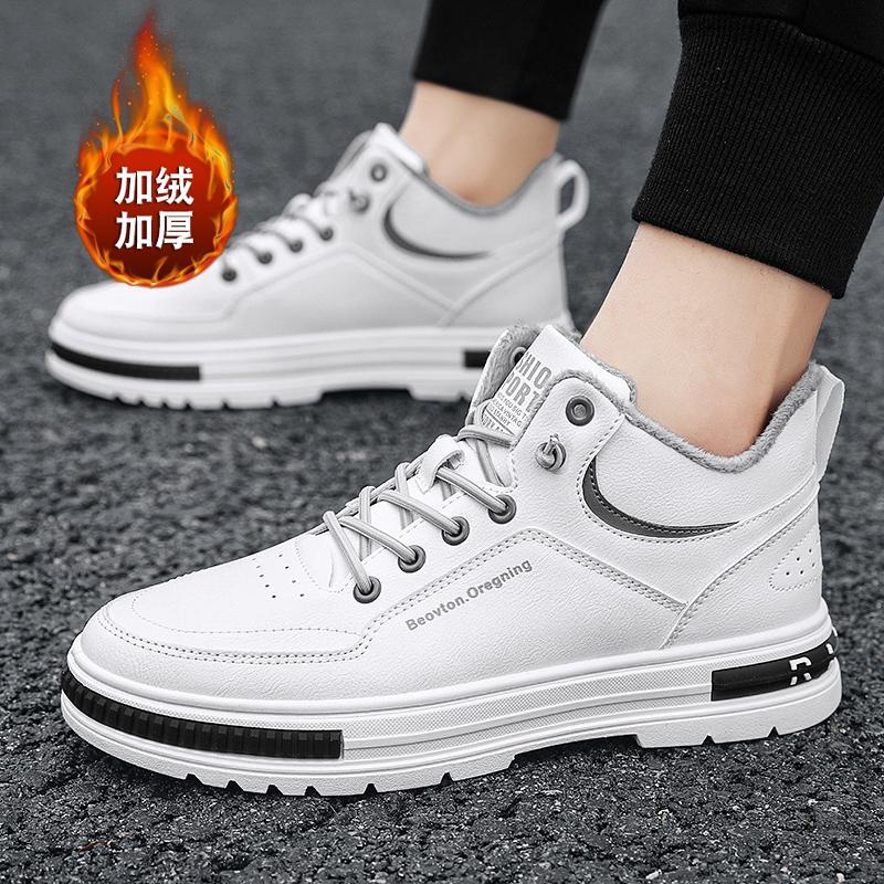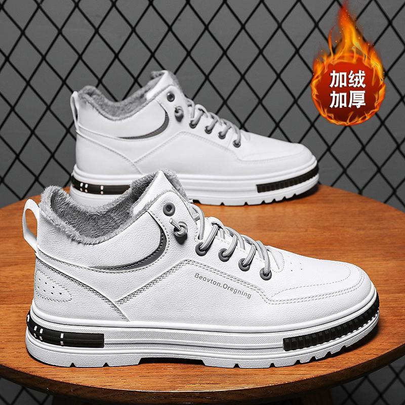 Зимние новые плюшевые теплые кроссовки для мужчин, трендовые высокие повседневные туфли на плоской подошве со шнуровкой в корейском стиле, обувь для инструментов