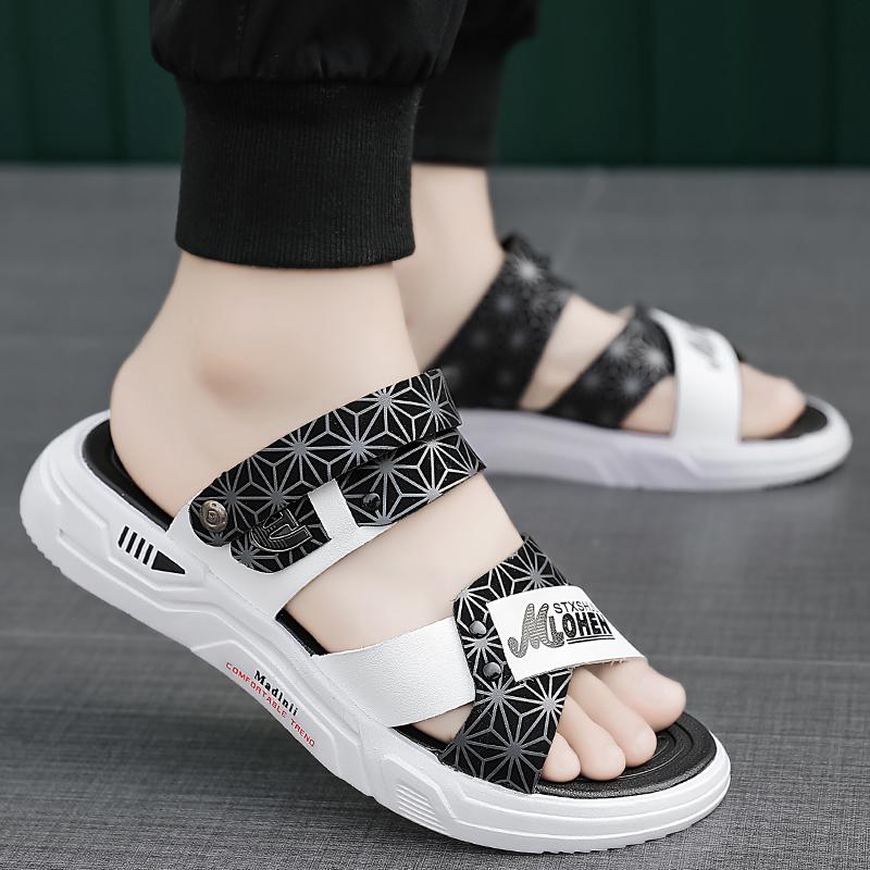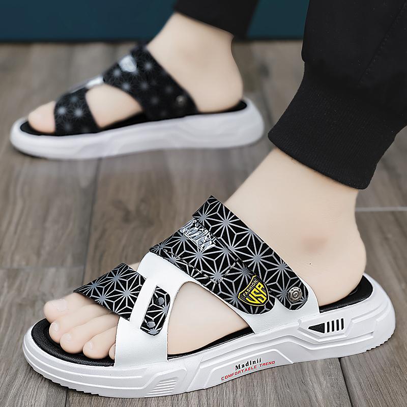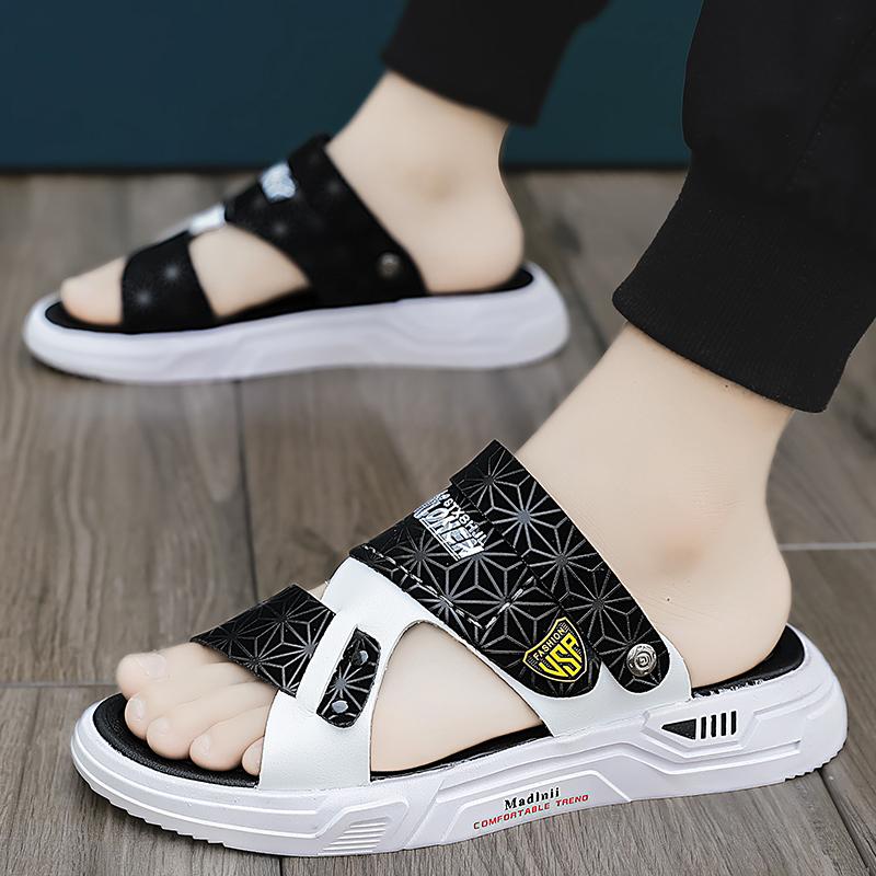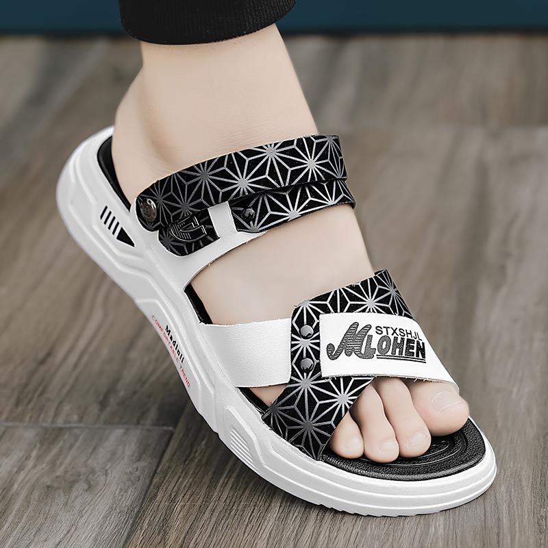 Сандалии для мужчин, тапочки, кожаные повседневные пляжные шлепанцы для отдыха на открытом воздухе, летняя мужская обувь 2024 года, шлепанцы для ходьбы, рыбалки