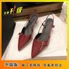 Ретро туфли-лодочки на тонком каблуке с открытой пяткой, бордовые, темпераментные, с острым носком, из лакированной кожи, на среднем каблуке, с закрытым носком, сандалии женские 2025 зима новые модели