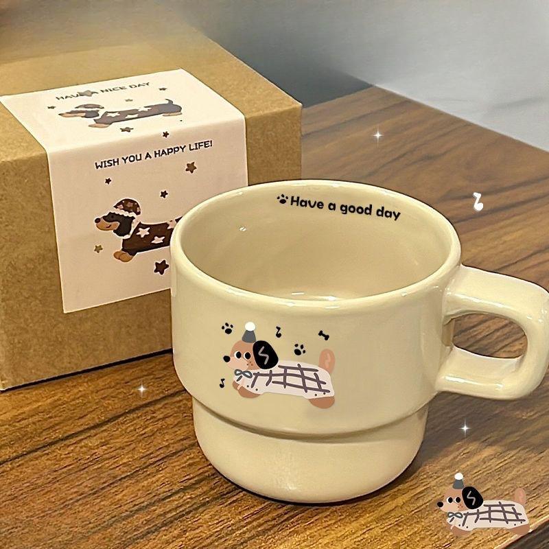 Мультяшный щенок, чашка для кофе на завтрак, керамическая чашка, в стиле инс, высококачественная кружка, сувенирная подарочная чашка