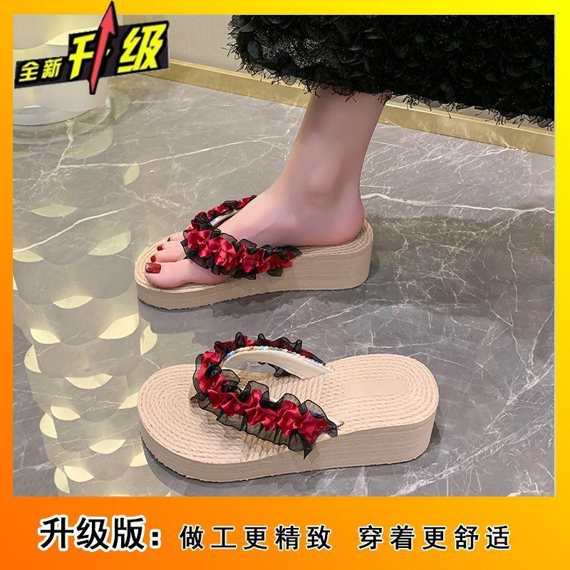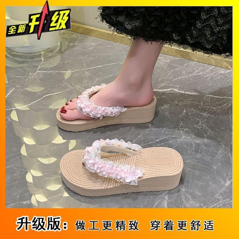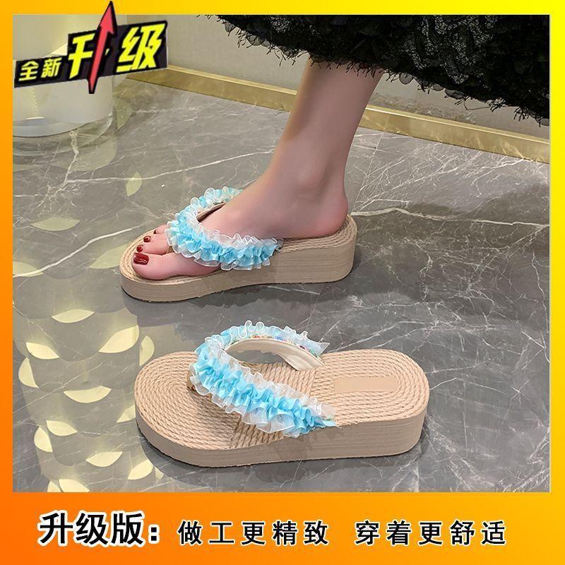 Сказочные кружевные шлепанцы с толстой подошвой и нескользящей подошвой для пляжного отдыха летом 2025 года, женские тапочки для улицы