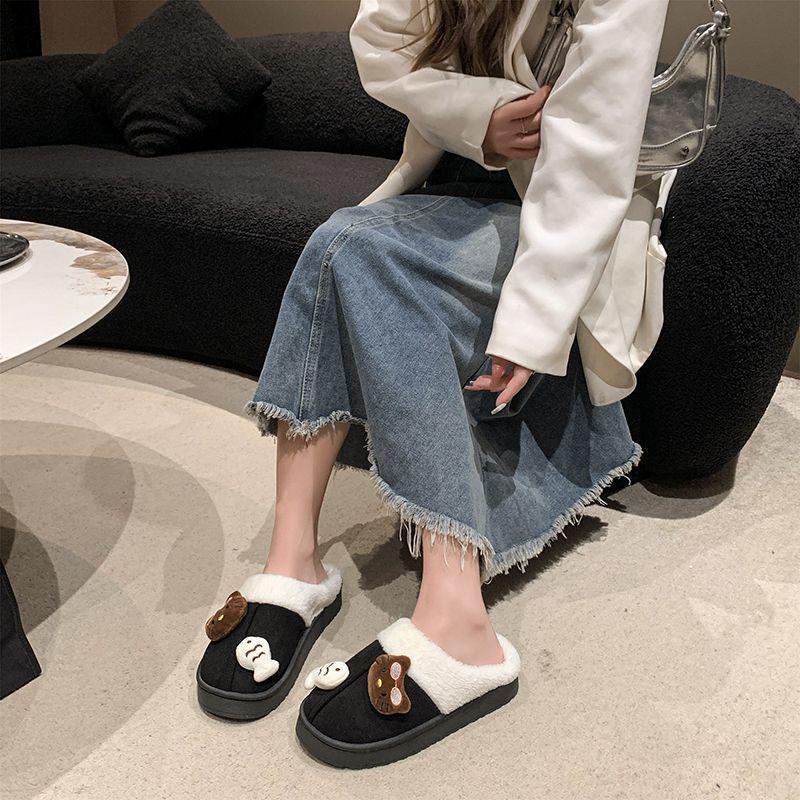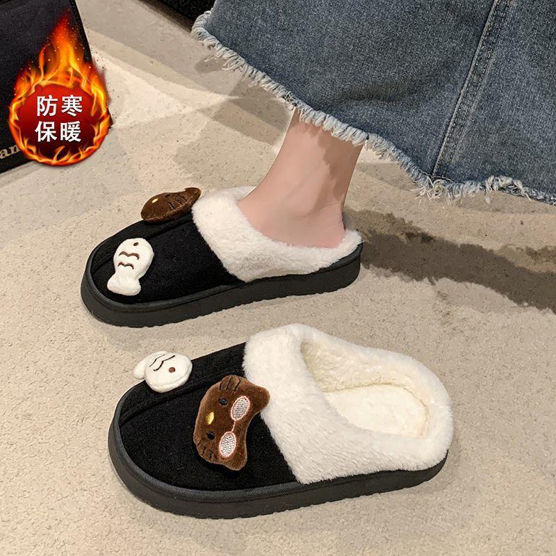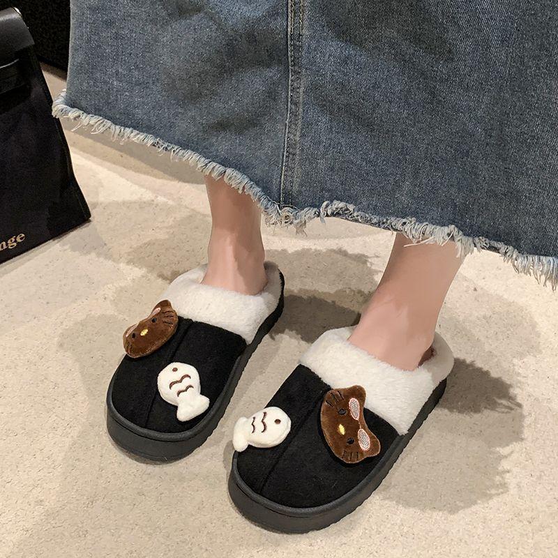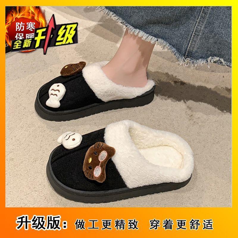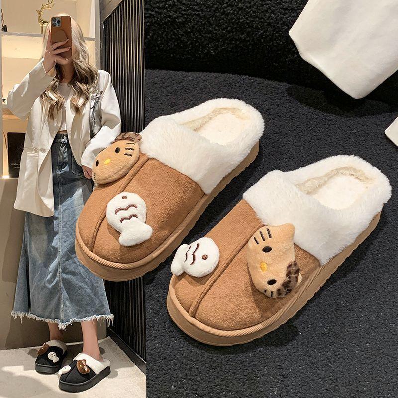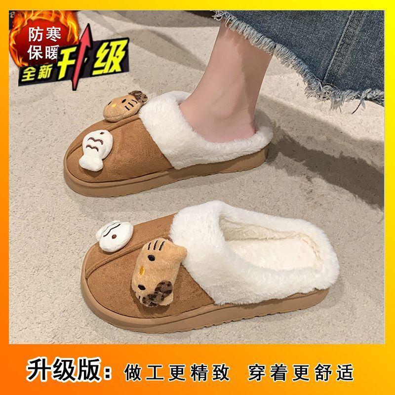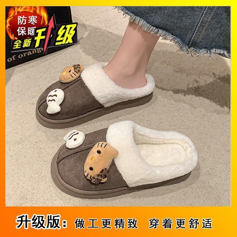 Теплые и удобные нескользящие пушистые тапочки милый мультяшный котенок толстая подошва хлопковые тапочки 2025 осень и зима новинка