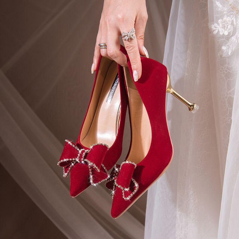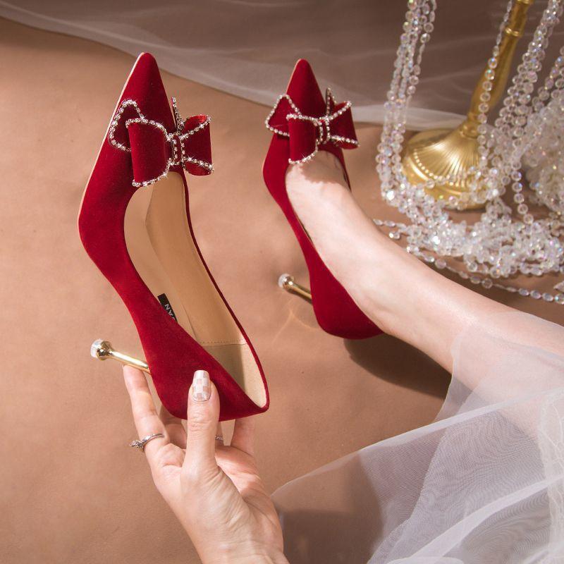 Свадебные туфли на высоком каблуке, не утомляющие ноги, красные свадебные туфли, летняя женская сценическая одежда, туфли для невесты, новинка 2025 года, китайская ниша
