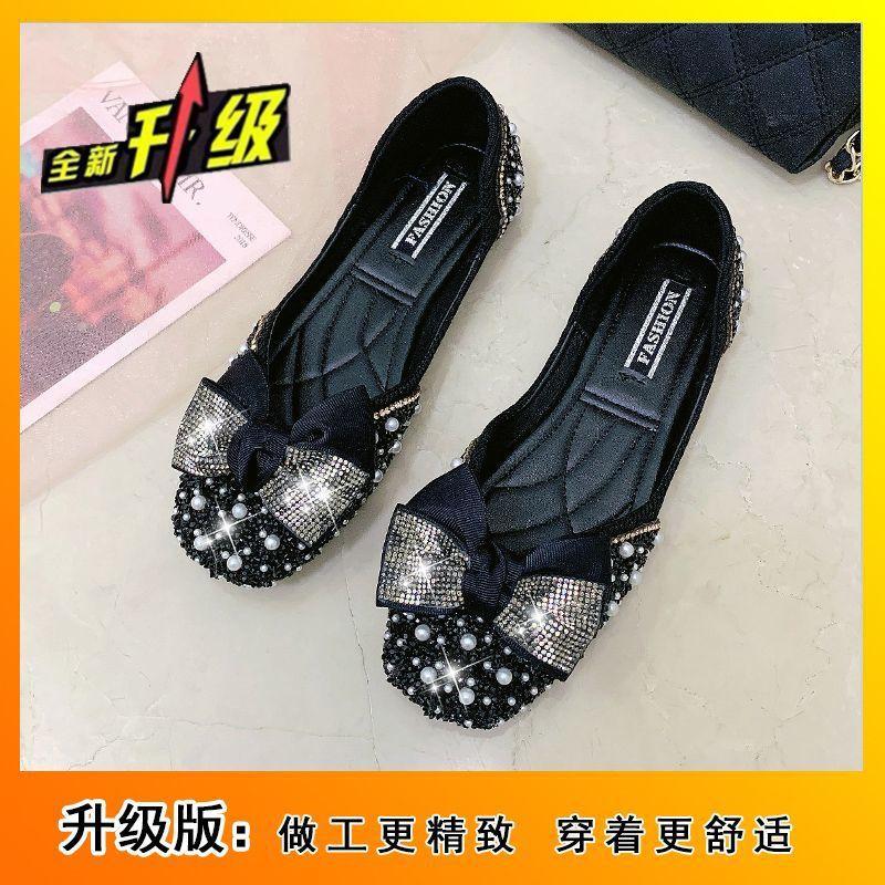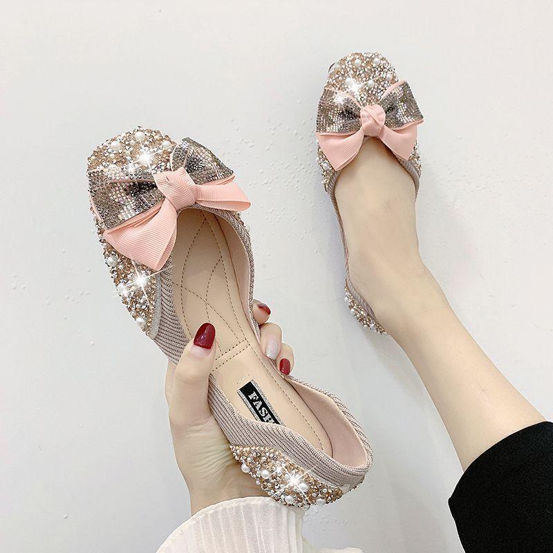 Неглубокие туфли-лодочки, комбинезоны, балетки, универсальный бант, одинарные туфли, женские, лето и осень 2025, новая коллекция, жемчуг, пайетки