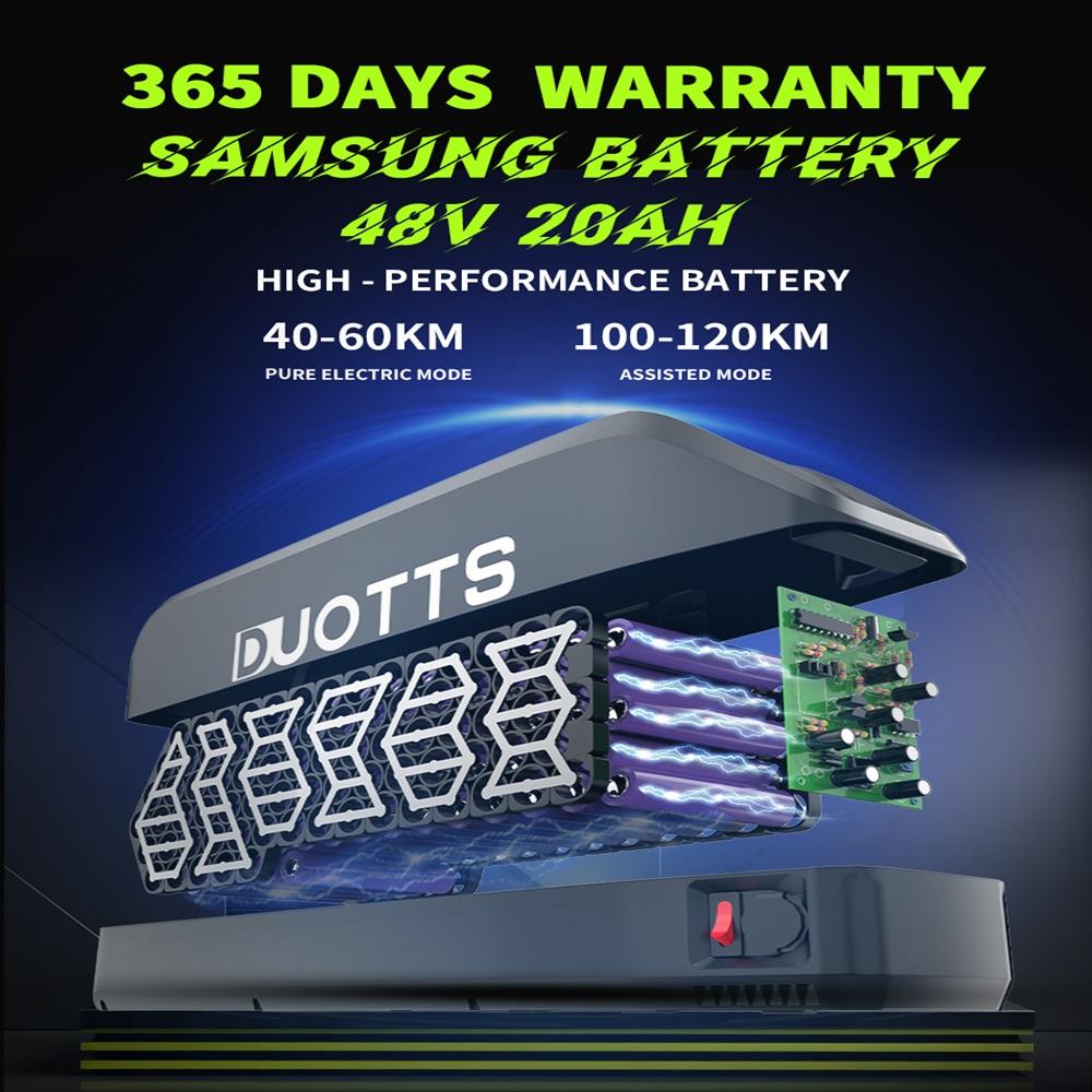 Battery: 48V 20Ah, equipped with Samsung 21700 cells.