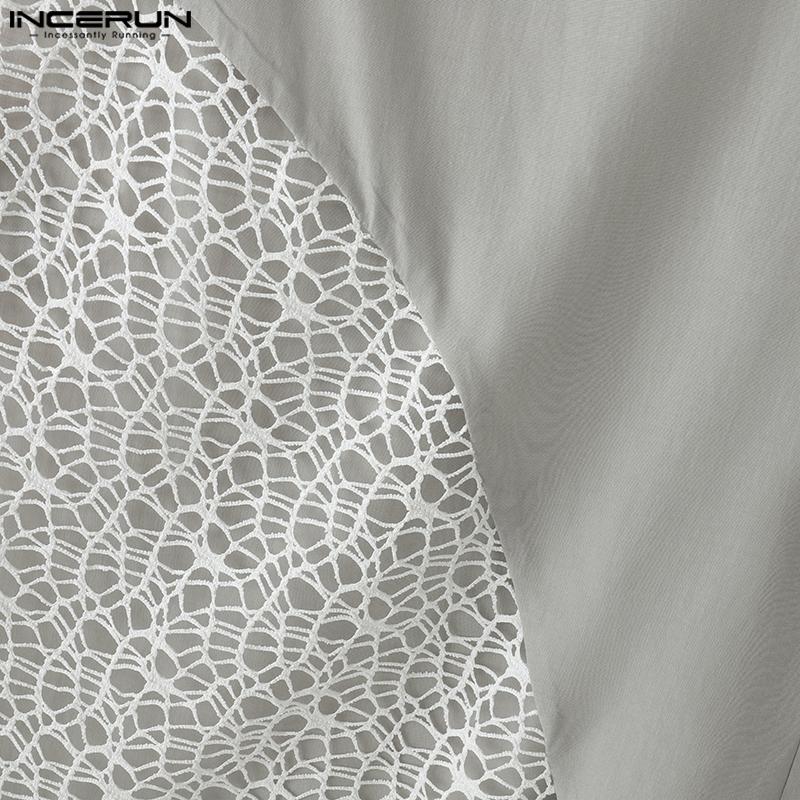 INCERUN Мужские брюки с молнией на талии, полым сетчатым подолом, пэчворком, длинные