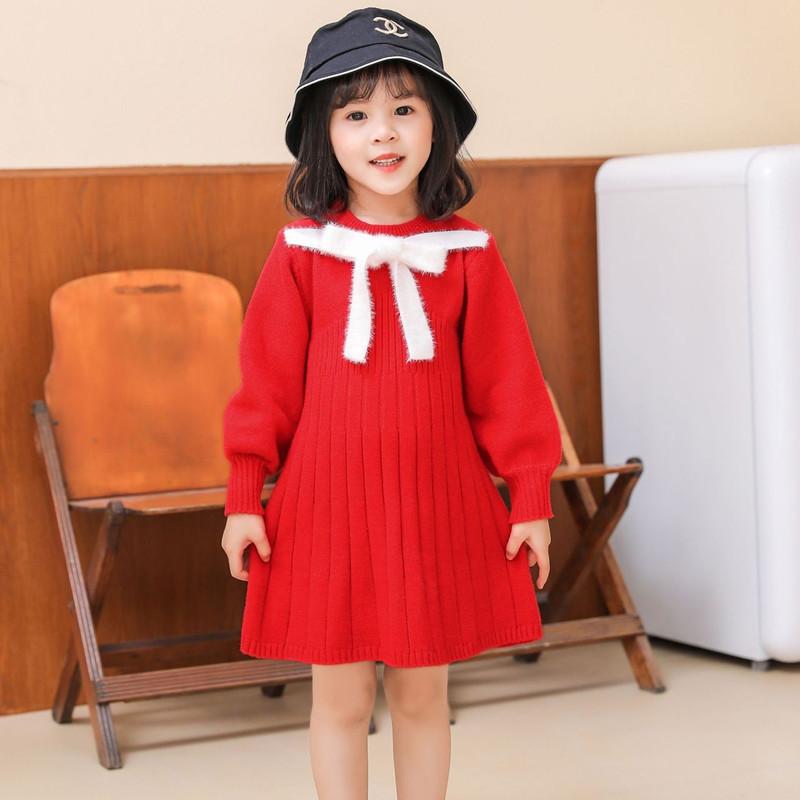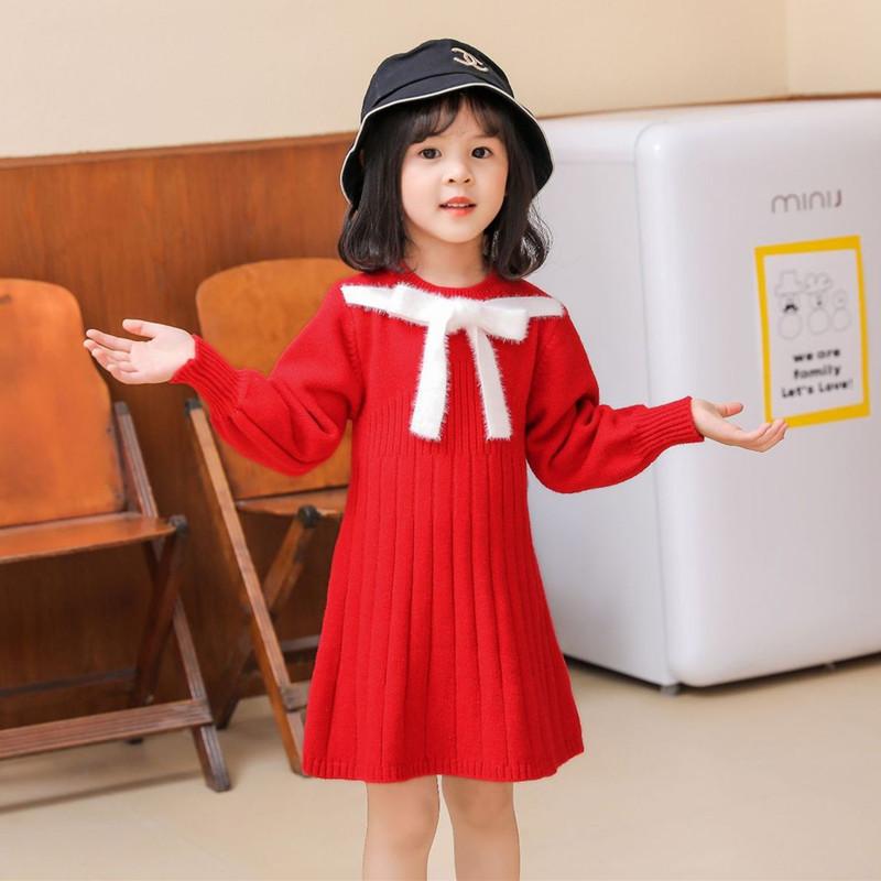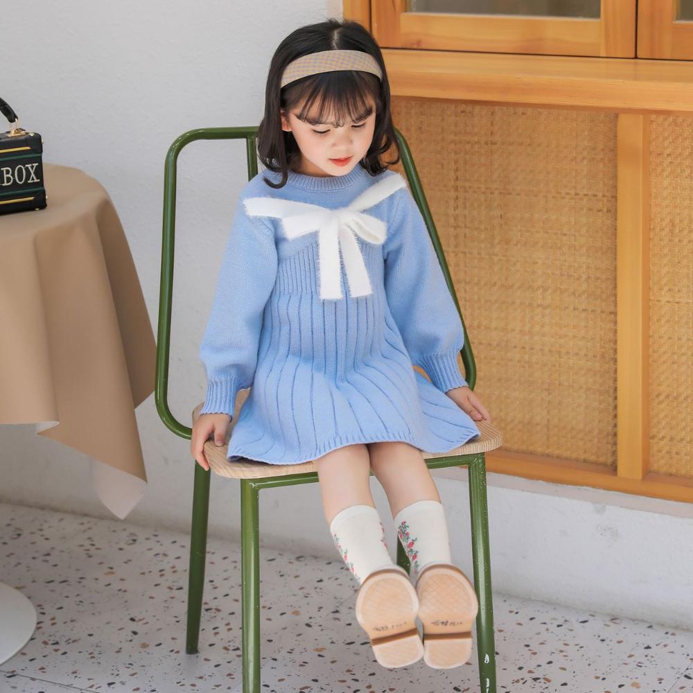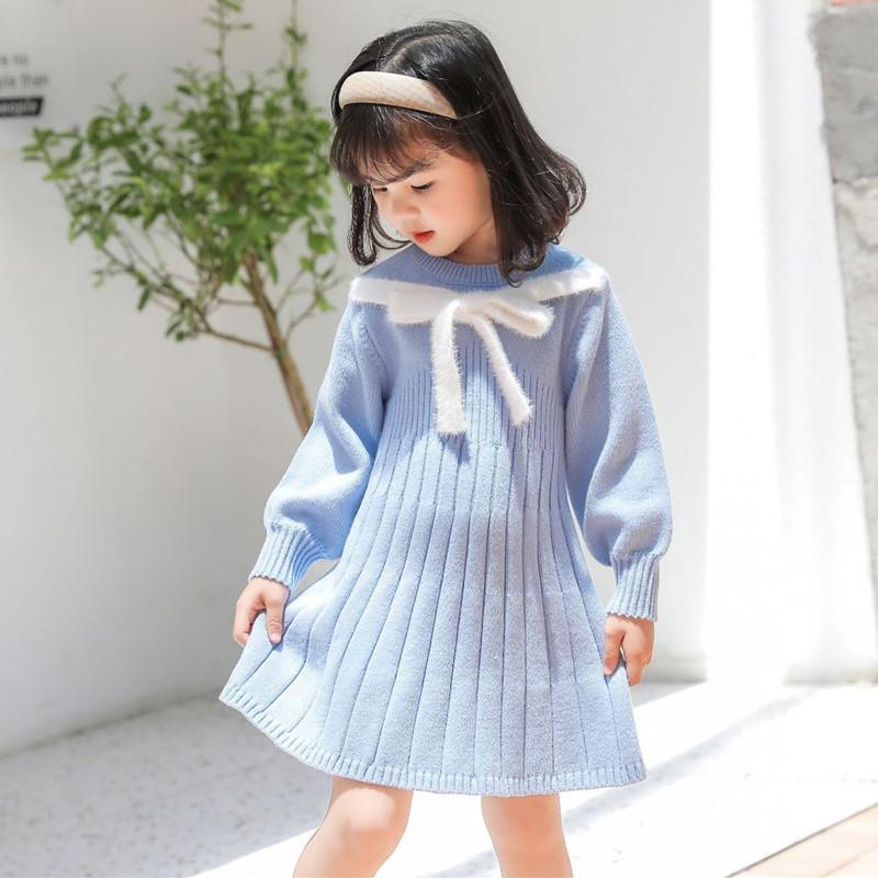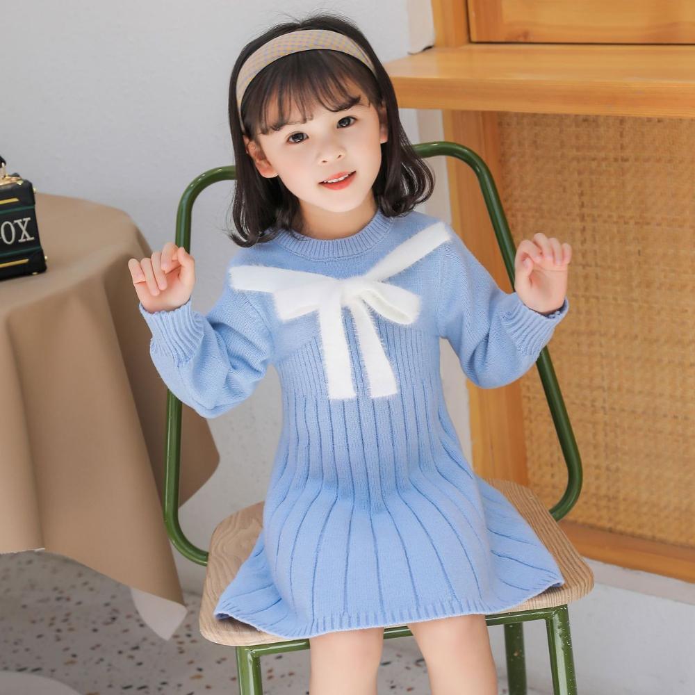 Платье для девочки Вязаное платье-свитер Весенне-осенний свитер Длинная юбка Детские милые платья принцессы