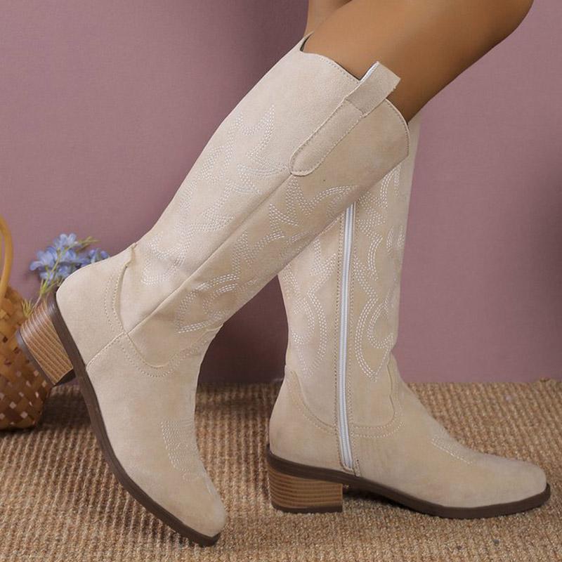 Женские ковбойские сапоги до колена «Челси» для женщин, прогулочная обувь на среднем каблуке, зимние модные массивные ботинки на молнии, туфли-лодочки, высокие ботинки в стиле панк