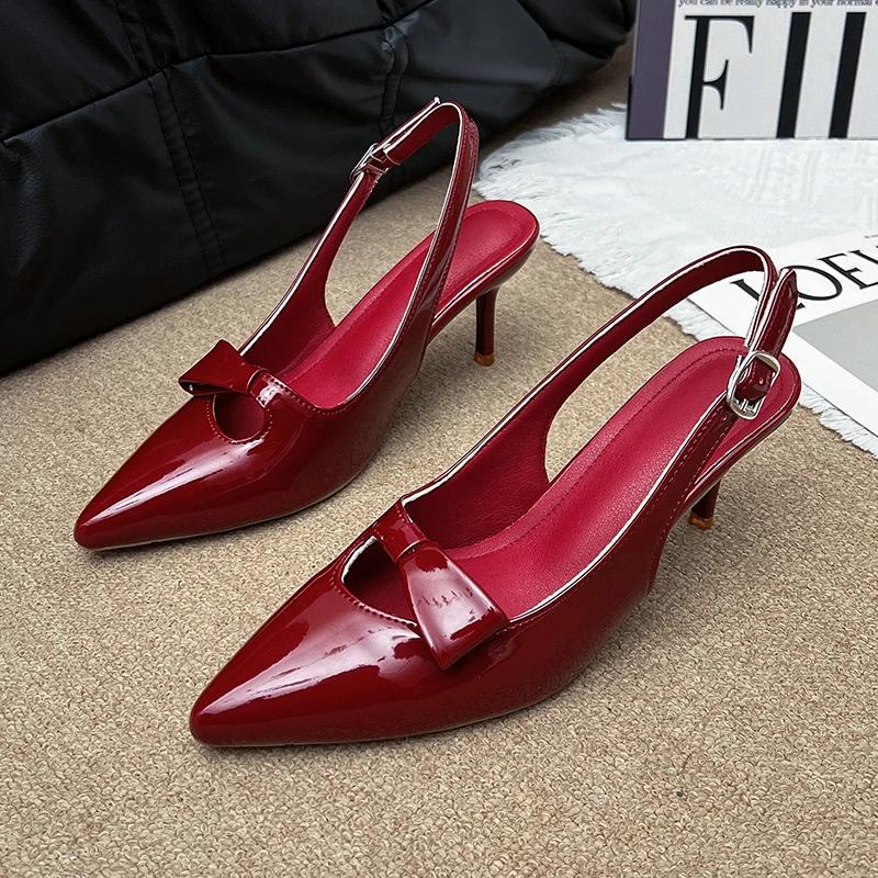 2025 Современные Офисные Женские Туфли Красные Свадебные Без задника Остроносые Украшение Бабочка Женские Босоножки на Высоком Каблуке Туфли-лодочки — купить товар онлайн с бесплатной доставкой по всему миру!
