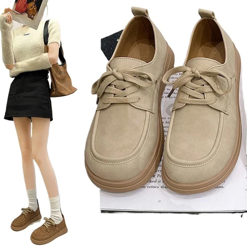 Осенние женские туфли на плоской подошве, повседневные туфли на шнуровке с мягкой подошвой, коричневые лоферы в стиле ретро, весенние туфли на тонкой платформе из мягкой микрофибры и кожи
