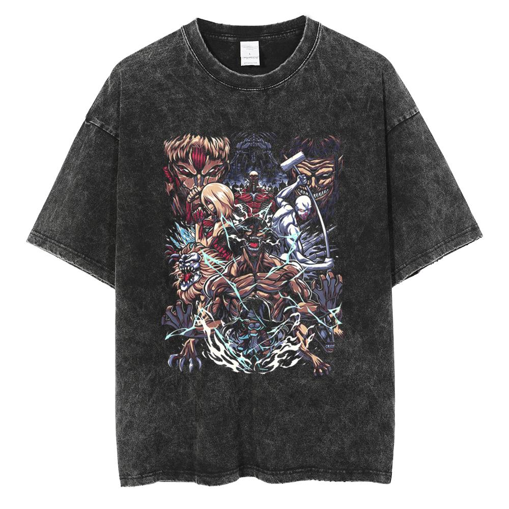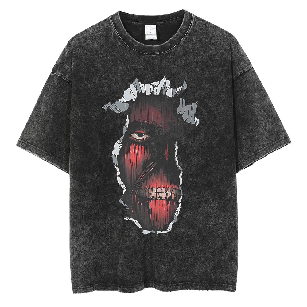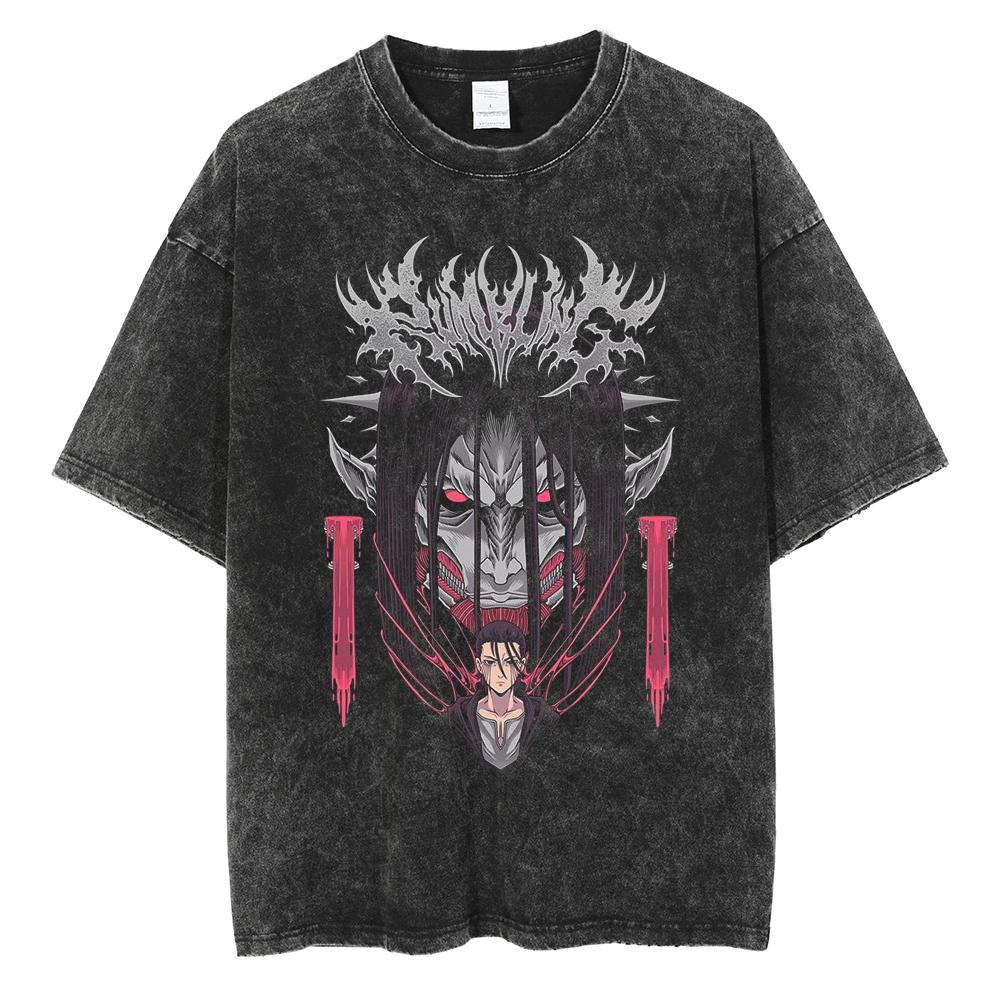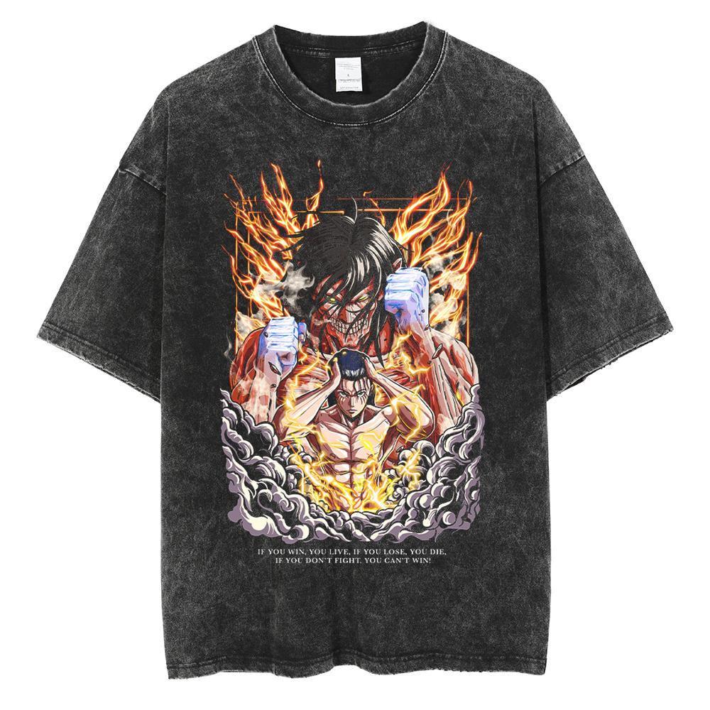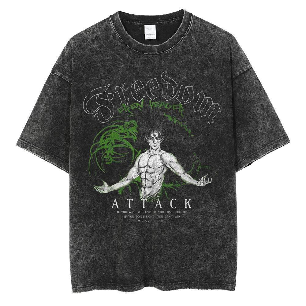 Эрен Йегер Атака Титанов Летняя Уличная Одежда Выстиранная Футболка Аниме Графический Принт Футболка Мужская Харадзюку Хлопок Оверсайз Винтажная Футболка