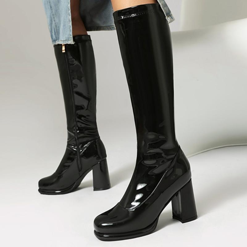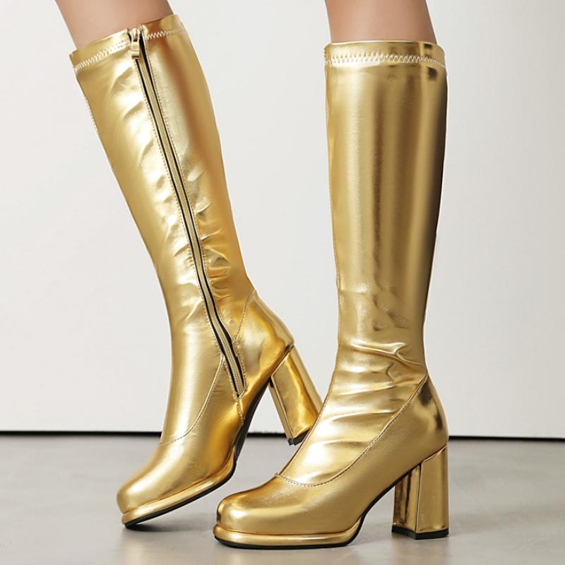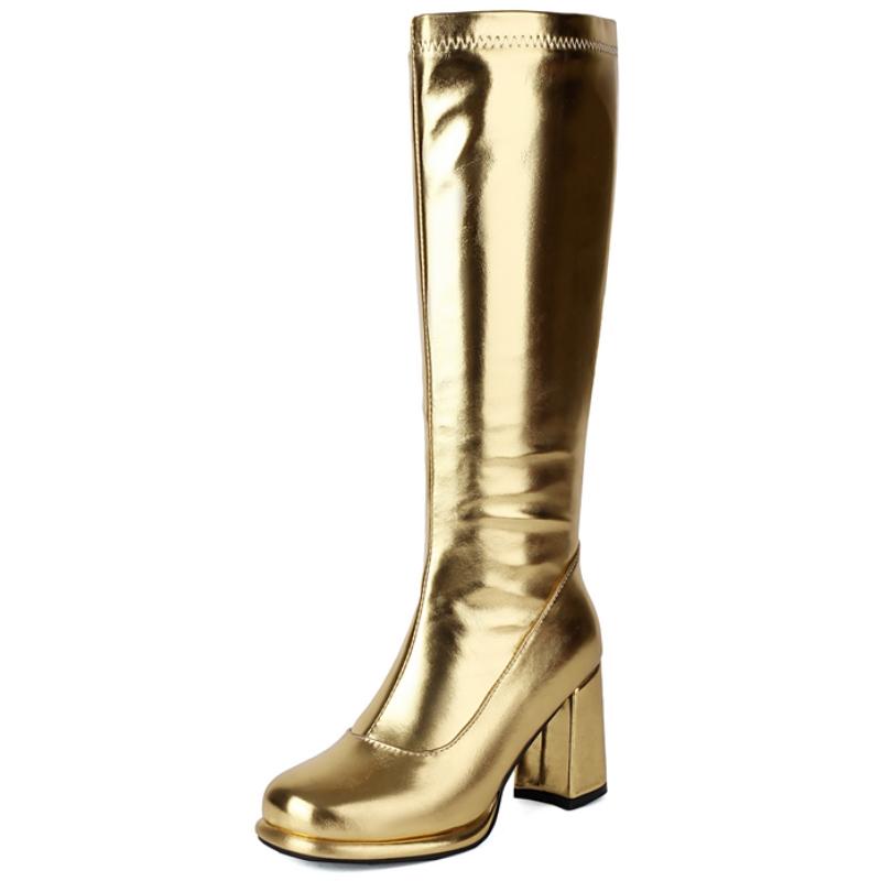 Женские ботфорты кожаные сексуальные на молнии зимние туфли черные золотые красные на каблуке длинные челси женские большого размера